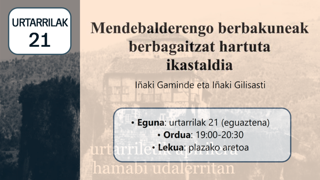 egilea BatzordeaUrtero lez, Euskararen Nazioarteko Egunaren inguruan, Gatikako Euskera Batzꙩrdeak jarduera batzuk antolatu dauz eguna ospatzeko. Abenduaren 2an, martitzena, Berbalagunak “Euskara errotzeko tresna” berbaldia antolatu da. Saioa 18:00etan eta plazako aretoan izango da. Abenduaren 5ean, bariku, euskal jaia egingo da: • 17:30ean: “euskeraren murala” (KTK Xarek girotutako saioa ume eta helduentzat).• 19:00etan: Intxurtxu Taldearen dantzaldia.• 19:30ean: afari arina.• 20:00etan: poteoa… - 2025-2026 Euskarazko Produktuen Katalogoa