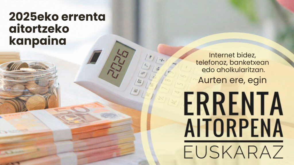 egilea BatzordeaUrtero moduan, garai honeetan, UEMAk errenta aitorpena euskeraz egiteko kanpaina abiarazo dau. Ekimenaren helburua euskeraren erabilera administrazinoarekiko harremanetan sustatzea da. Gaur egun, aldundiek aukera emoten dabe errenta euskeraz egiteko, bai internet bidez, bai telefonoz edo aurrez aurre. Era berean, banketxe batzuetan bere euskeraz egin daiteke aitorpena. Aurtengo errenta eta ondasun aitorpena (2025. urteari dagokiona) apirilaren 15etik bagilaren 30era aurkeztu… - 24. KORRIKA: Atharratzetik Bilbora, martiaren 19tik 29ra